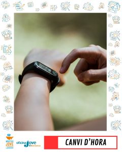 La matinada del dissabte 29 al diumenge 30 de març de 2025, avançarem els rellotges una hora: a les 2:00 seran les 3:00. Això significa que dormirem una hora menys, però guanyarem més hores de llum a les tardes per gaudir de l’aire lliure!