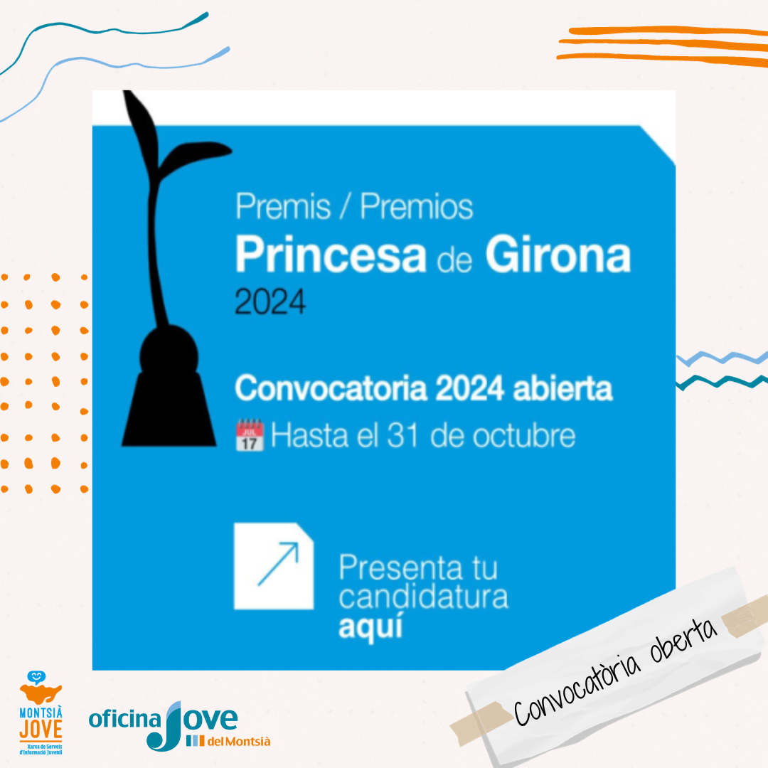 View Larger Image Convocatòria Premis Princesa de Girona 2024 Participa a la convocatòria dels Premis Princesa de Girona 2024 Joves de fins a 35 anys i amb una trajectòria destacada en els àmbits Social, les Arts i les Lletres, la Recerca Científica, o Empresa. Més informació AQUÍ MontsiaJove 2023-09-20T09:51:16+00:00 20/09/2023| Comparteix Aquest Article FacebookTwitterLinkedinRedditTumblrGoogle+PinterestVkEmail