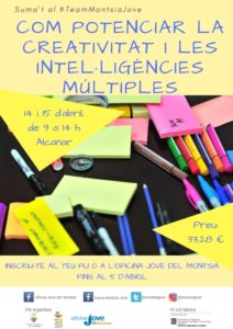 El curs de creativitat i intel·ligències múltiples tindrà lloc a Alcanar, durant els matins, de 9 a 14 h, del cap de setmana del 14 i 15 d’abril de 2018.