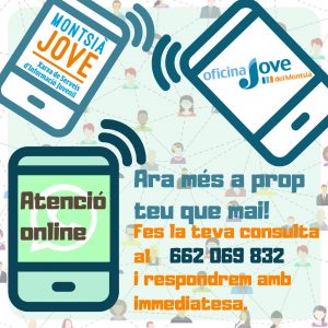 Apunta el nostre telèfon a l’agenda: 662 069 832 i contacta amb els serveis comarcals de la Joventut directament amb trucada, missatge o WhatsApp.