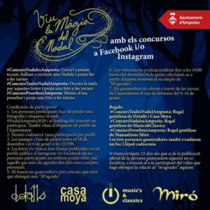La sotragada a causa del virus SARS-COV-2 i la malaltia de la COVID-19 han capgirat molts dels moments d’aquest any 2020. Les festes de Nadal que es celebren durant una de les èpoques més esperades de l’any, no han estat una excepció i les celebracions i actes tal com es plantejaven fins al moment s’han vist afectats per l’evolució del risc de contagi per COVID-19. Tanmateix, gràcies al fort esperit nadalenc i les ganes de sumar algunes experiències positives més, tant per part dels ens locals com de la comunitat, així com cadascú a títol individual, s’ha demostrat una evident predisposició a repensar i desenvolupar a través de nous formats els esdeveniments tradicionals i activitats per a tots els públics.