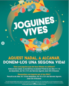 Igual com en anys anteriors, la majoria de pobles de la comarca han aprofitat la recaptació en aquests esdeveniments per col·laborar amb projectes solidaris com “La Marató”, “Projecte Emma”, destinar fons al banc d’aliments o altrament, assegurant que tots els infants tenen un regal aquest Nadal donant una segona vida a les joguines.