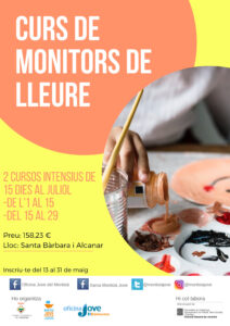 La Xarxa de Serveis d’Informació Juvenil “Montsià Jove” organitza per als mesos de juny i juliol un curs de premonitors i dos cursos de monitors de lleure intensius. L’oferta de cursos respon bàsicament a una necessitat social. La comarca del Montsià durant la temporada estival acull nombroses activitats vinculades en el lleure, on és essencial la presència de persones formades en aquest àmbit, siguin premonitors, monitors i directors de lleure.