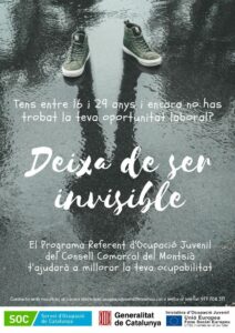 El Programa referent d’ocupació juvenil pretén ser un programa innovador mitjançant l’establiment d’unes unitats especialitzades d’ocupació juvenil al territori. L’objectiu és el de facilitar i acompanyar la transició de les persones joves, entre 16 i 29 anys, especialment aquelles persones més joves amb dificultats en el seu desenvolupament personal, acadèmic, laboral, etc. i amb major necessitat d’assessorament i acompanyament en el procés de transició del sistema educatiu al sistema laboral i ocupacional.
