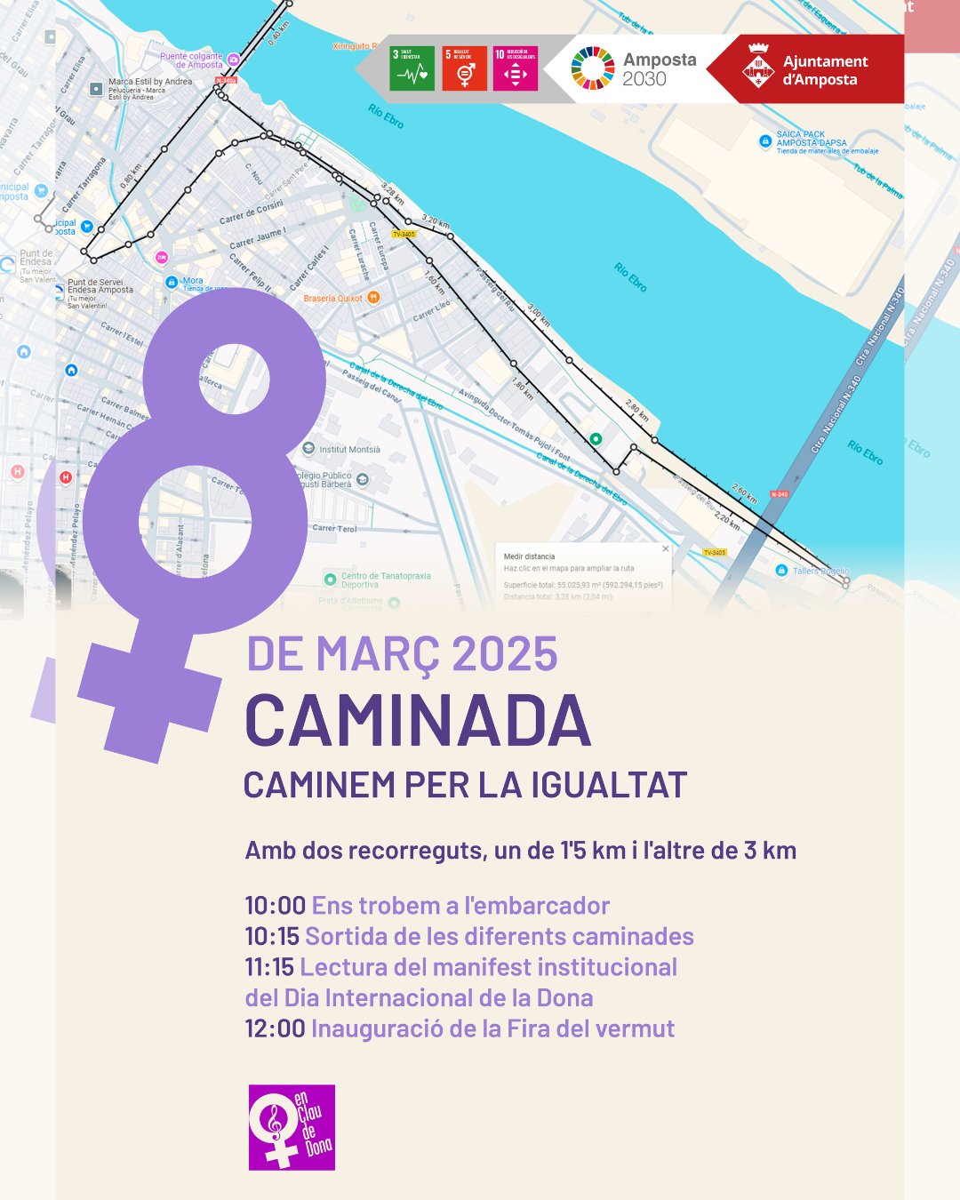 Amposta commemora el 8M amb una caminada popular. Aquest dissabte 8 de març, vine i camina per la igualtat!