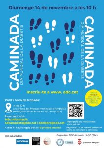 Caminada pel Dia Mundial de la Diabetis a Amposta, un recorregut urbà amb obsequis per a tots els participants. Donació de tres euros solidaris per a la investigació d’aquesta malaltia.