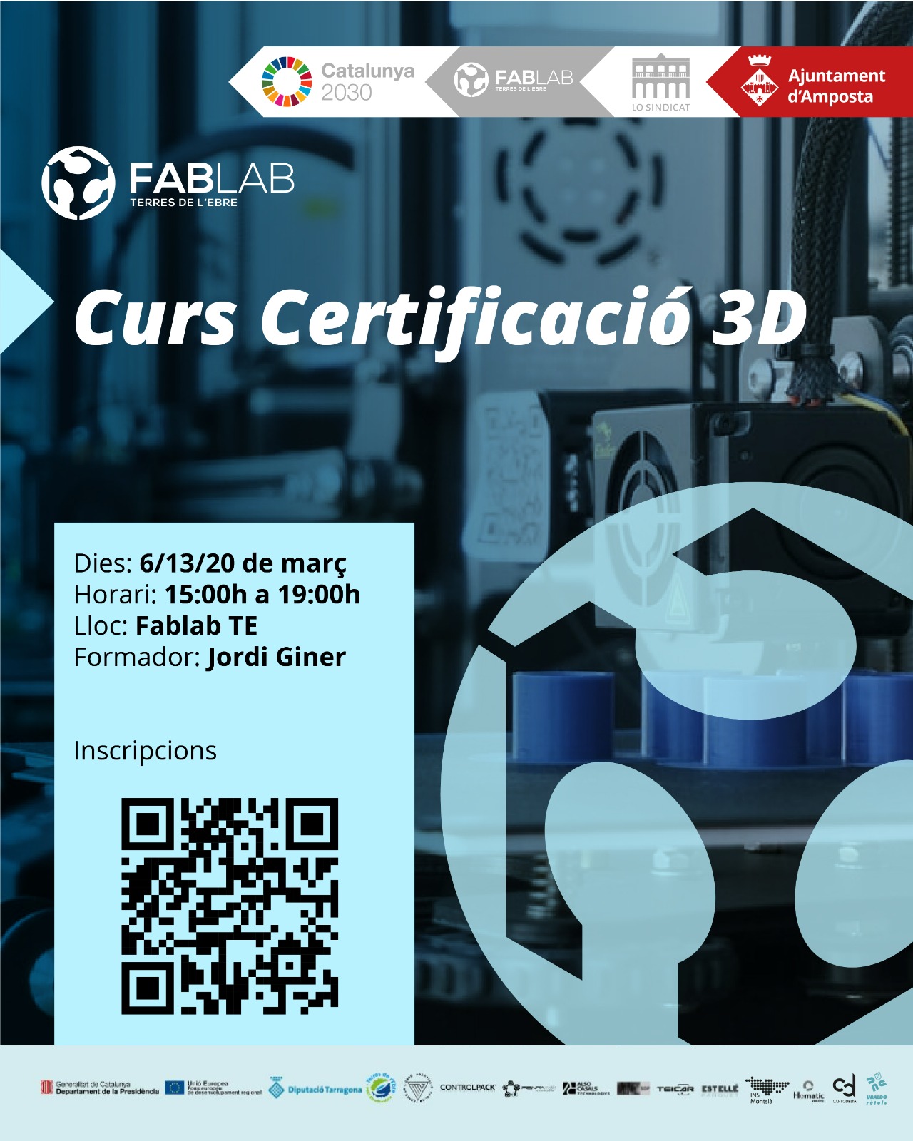 Apunta’t al Curs de Certificació 3D al FabLab Terres de l’Ebre i aprendràs els fonaments de la impressió 3D, preparació d’arxius i ús de maquinària, amb certificació final.