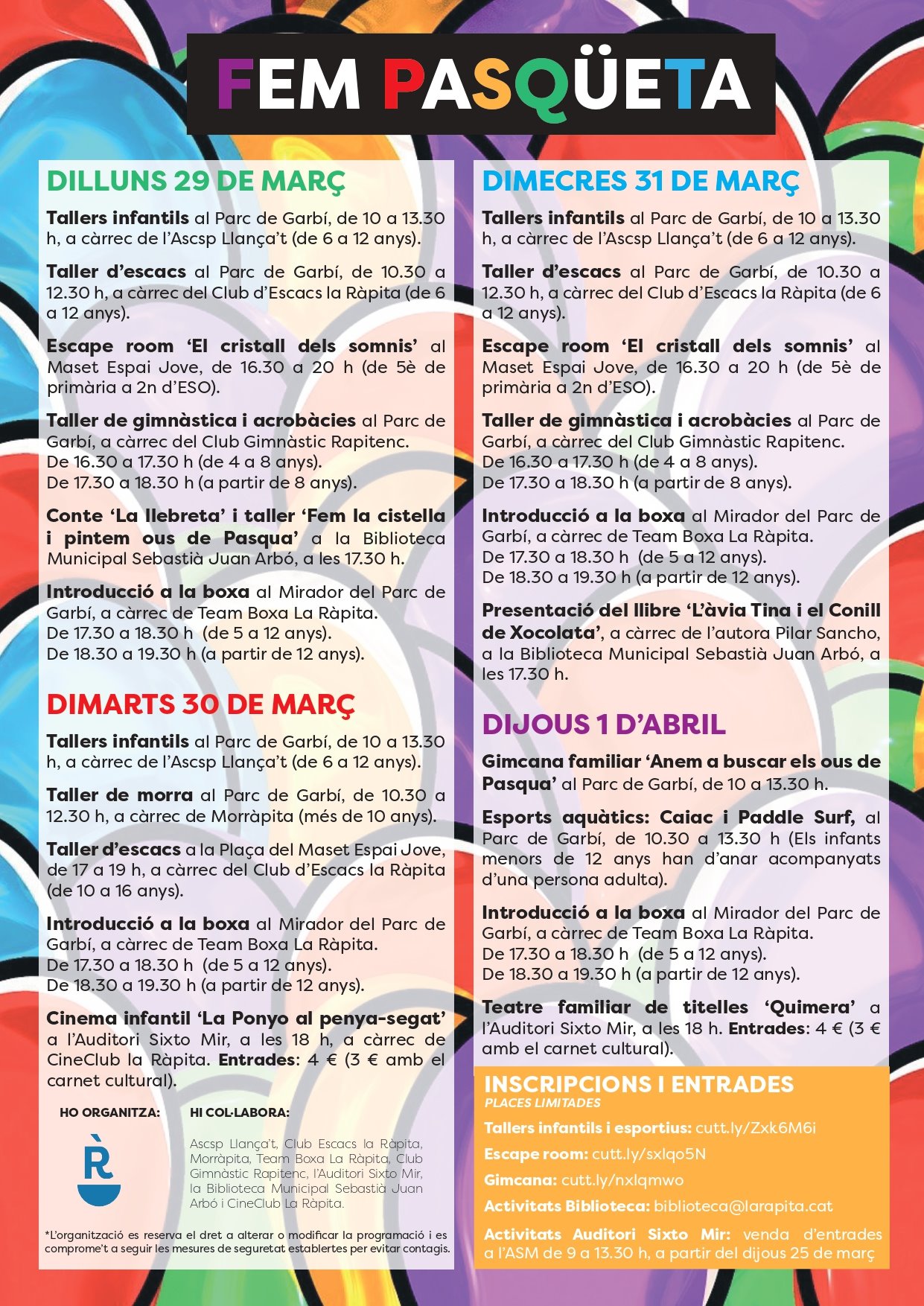 L’Ajuntament de la Ràpita anuncia la programació de les activitats per gaudir les vacances de Pasqua dirigides a infants, famílies i joves ‘Fem pasqüeta’!