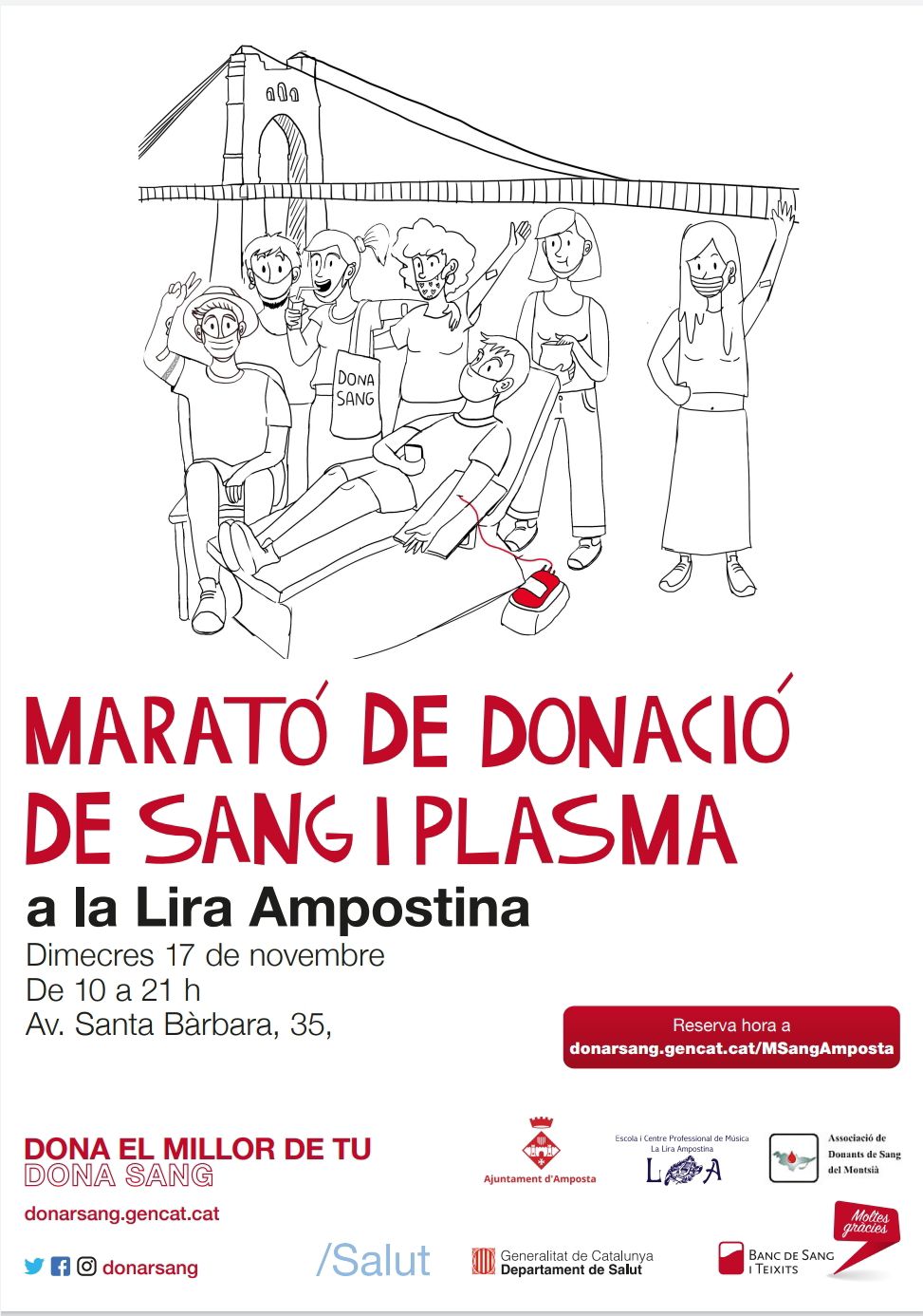 Vine a donar sang a la Marató de donació de sang i plasma d’Amposta. És necessari reservar cita prèvia.Dimecres 17 de novembre de 10 a 21 hores – La Lira Ampostina