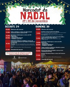 Dissabte, 29 i diumenge, 30 de novembre us esperem al Mercat nadalenc a la plaça de Sant Jaume d’Enveja, dos dies per gaudir de tallers, actuacions i respirar ambient nadalenc amb els estands dels comerços i associacions. T’esperem!