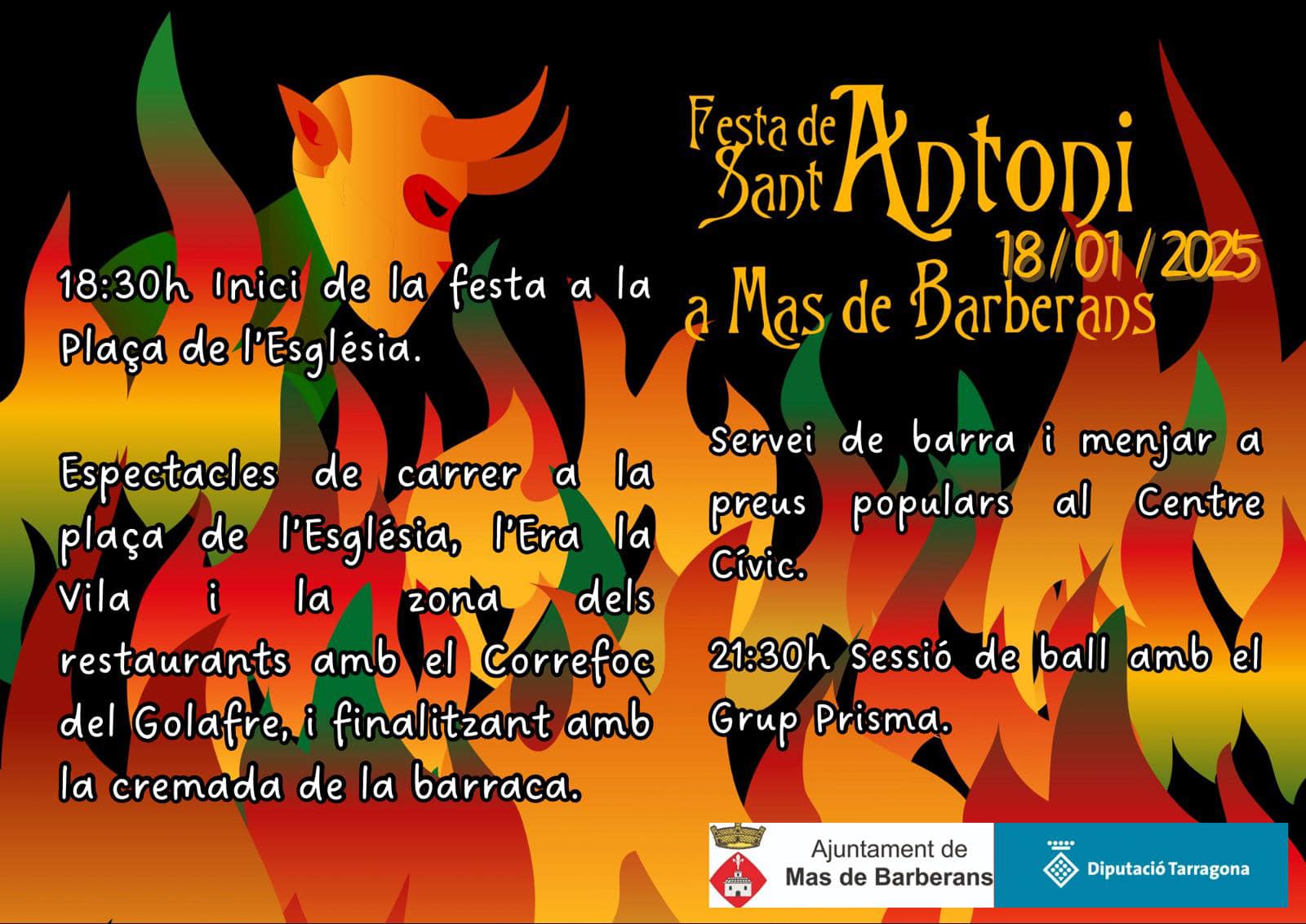 Viu la tradicional festa de Sant Antoni del Mas de Barberans. Gaudeix dels espectacles, la cremada de la barraca i el ball el proper 18 de gener. T’esperem!!