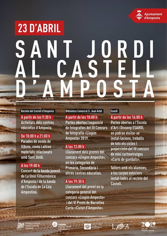 Sant Jordi al Castell d’Amposta Calendar Afegir a Calendari Afegir al calendari Timely Afegir a Google Afegir a Outlook Afegir a Apple Calendar Afegir a un altre calendari Export to XML Quan: abril 23, 2019 tot el dia 2019-04-23T00:00:00+02:00 2019-04-24T00:00:00+02:00 Contacte: Ajuntament d'Amposta Lloc web de l'esdeveniment Cultura MontsiaJove 2019-04-20T19:08:15+00:00 20/04/2019| Comparteix Aquest Article FacebookTwitterLinkedinRedditTumblrGoogle+PinterestVkEmail