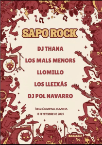 I Festival “Sapo Rock” a la Galera!!! Aquest dissabte 13 de setembre no us podeu perdre el primer festival de rock organitzat l’associació de Joves Sapets de la Galera, amb una interessant selecció de grups de rock i DJ’s del territori!