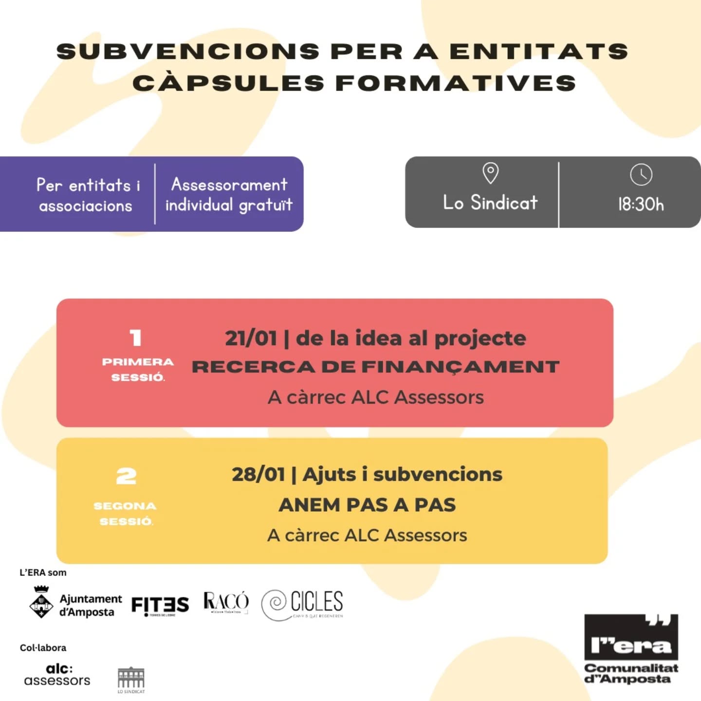 2a sessió el 28 de gener: “Ajuts i subvencions. ANEM PAS PER PAS”