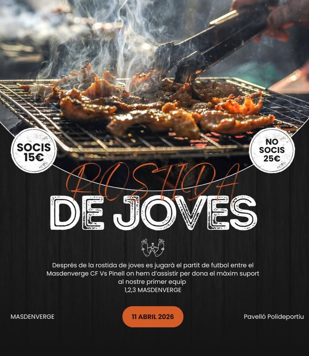 xim 11 d’abril, Masdenverge viurà una jornada festiva amb un complet programa de vermut i rostida organitzat al Pavelló Polideportiu. La jornada començarà a les 12:00 h amb un vermut per obrir boca i continuarà amb una rostida a la brasa per a tots els assistents. L’activitat culminarà amb una sortida conjunta cap al Camp d’esports municipal per animar al primer equip del futbol local.