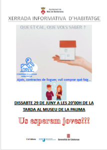 Estàs pensant comprar o llogar un habitatge? Vine el proper 29 de juny a les 20h a la xerrada informativa d’habitatge al Mas de Barberans. Et resoldran tots els dubtes que tinguis en relació a ajuts, contractes de lloguer, què necessites si compres un habitatge,….Una interessant oportunitat!!