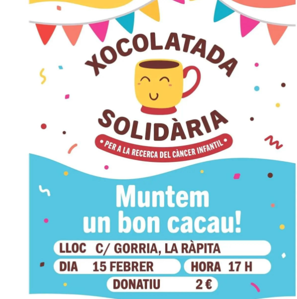 Vols muntar un bon cacau? Participa en la 6a xocolatada amb motiu del Dia Internacional del Càncer Infantil, a fi de sensibilitzar sobre la malaltia i aconseguir que algun dia el 100% dels infants que la pateixin puguin curar-se.
