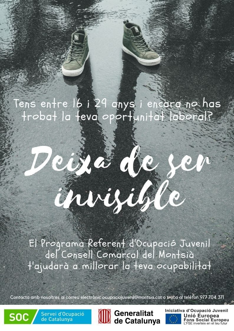 Deixa de ser invisible MontsiaJove 2019-01-16T14:21:16+00:00 16/01/2019| Comparteix Aquest Article FacebookTwitterLinkedinRedditTumblrGoogle+PinterestVkEmail
